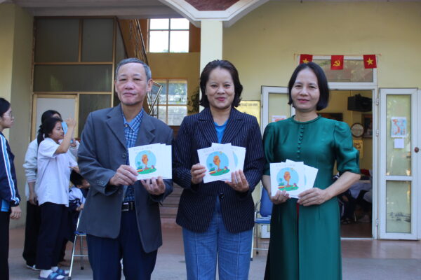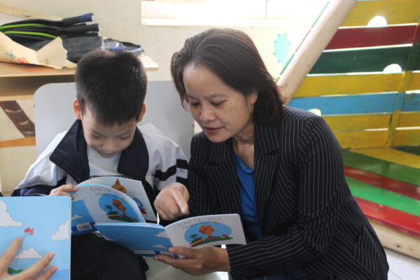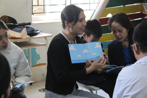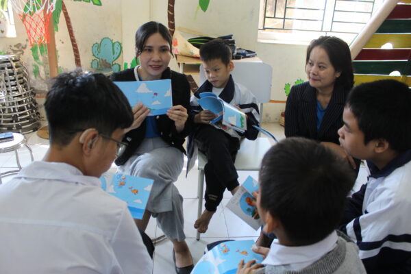 Trong buổi trao tặng, cô Hương – Giám đốc DNXH Vì Người Khiếm Thính Việt Nam đã trực tiếp gửi tặng những cuốn sách không chữ “Chú cá vàng thiên tài – Goldfish Genius” do dự án SHE+ phối hợp cùng ChangeX và BookDash thực hiện. Bên cạnh đó, SHE+ còn tổ chức buổi tập huấn giáo viên hướng dẫn cách sử dụng sách cho các bạn học sinh khiếm thính.